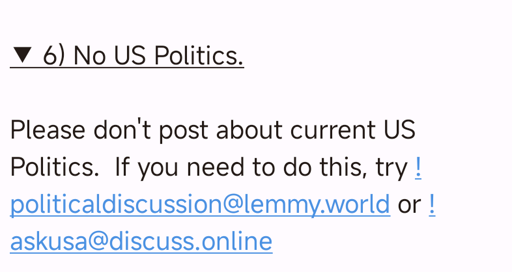 I’m going to leave this post up as it’s not actually about US politics, but about how the asklemmy community wants it to work.