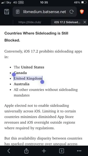 Hellfire103@sopuli.xyz to Mildly Infuriating@lemmy.worldEnglish · 2 years agoSideloading won't be enabled where I livesopuli.xyzimagemessage-square4linkfedilinkarrow-up10arrow-down10