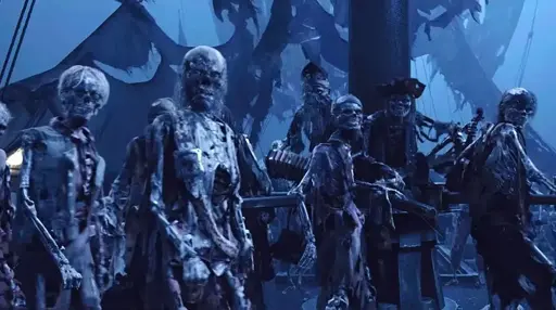 Despite the name, the Ghost Pirate trope includes all forms of undead pirates, including zombie or skeletal variants (literal skeleton crews).