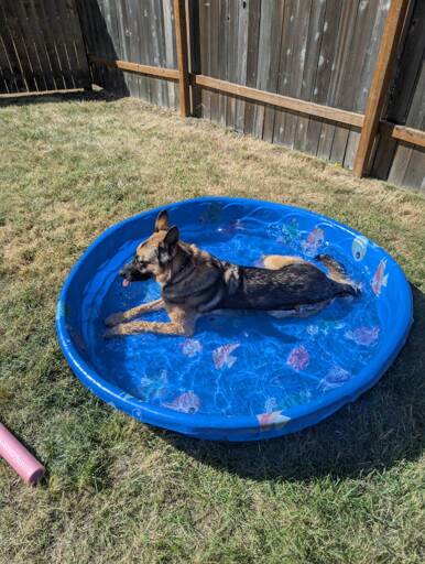 Just what comes out of the hose and she’s too big for the tub in the house. I need to check the local pet shop that has baths and see if theirs is heated, at least during the winter.